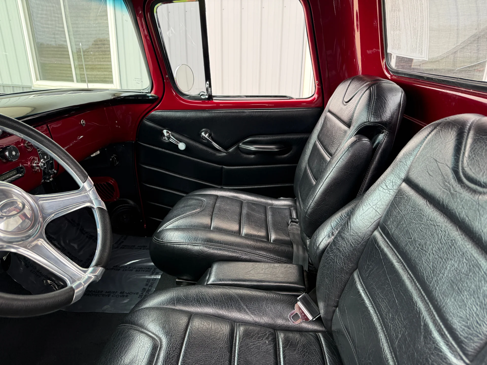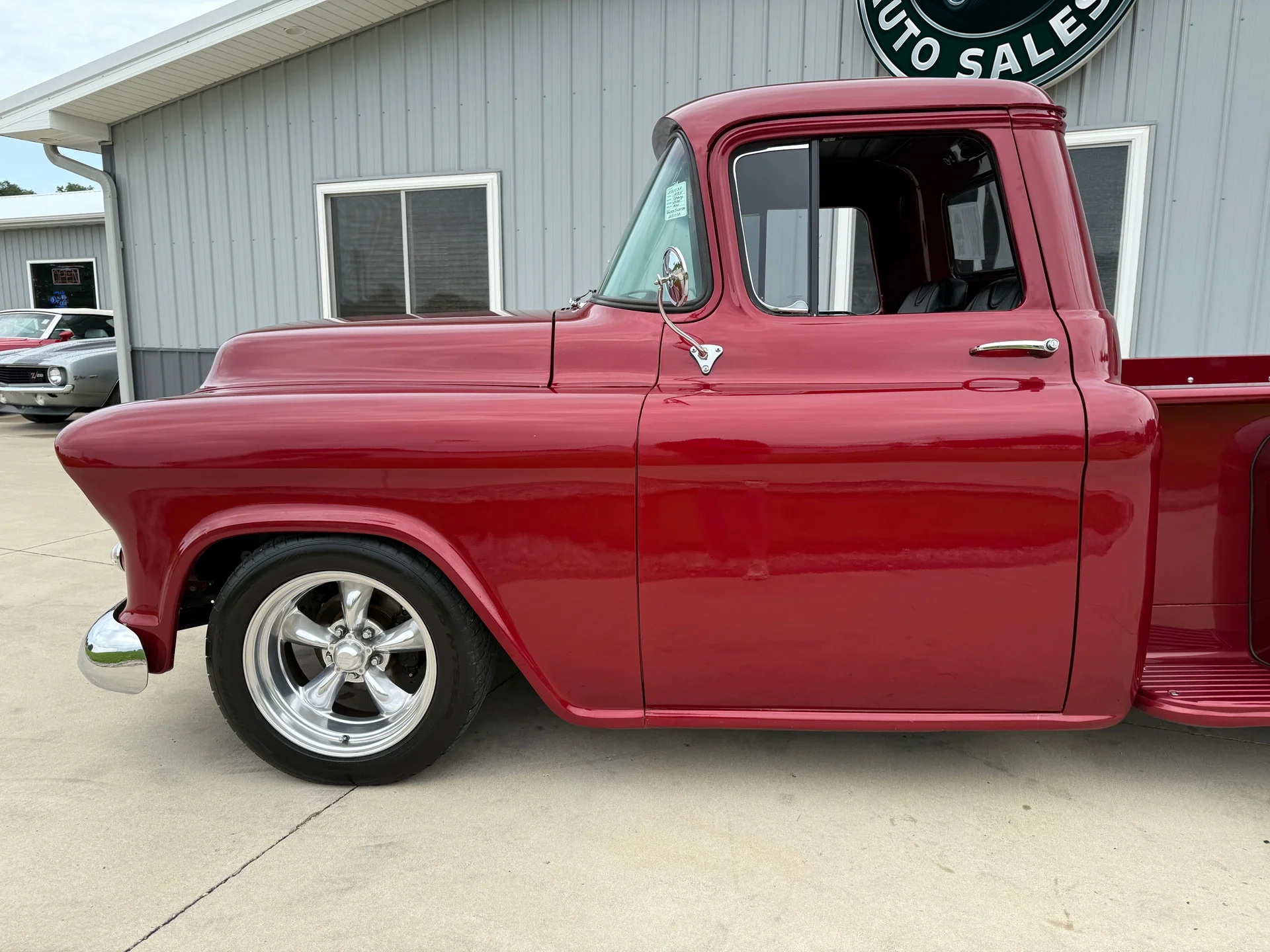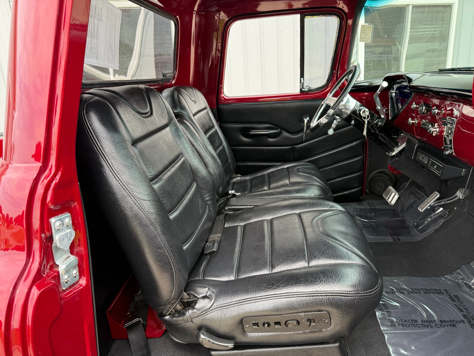 This 1955 3100 restomod blends the timeless styling of the first-year Task Force trucks with performance and comfort upgrades that make it far more capable than its mid-century origins. The 1955 redesign introduced smoother body lines, a wraparound windshield, and a more modern stance, all of which helped establish this generation as one of the most influential classic pickups. This example embraces that heritage with a red exterior that highlights the body’s crisp contours and a black leather interior that provides a refined contrast.