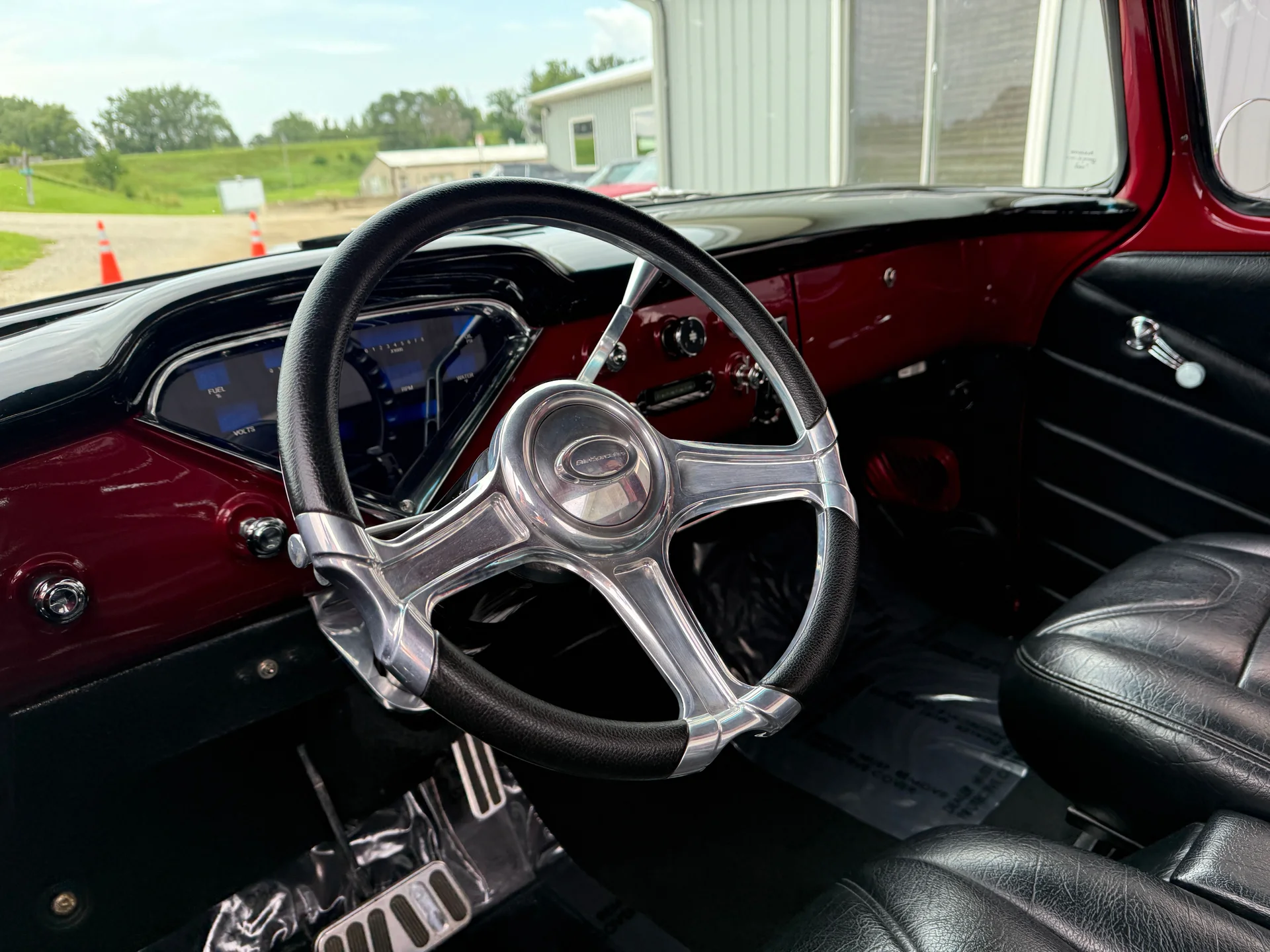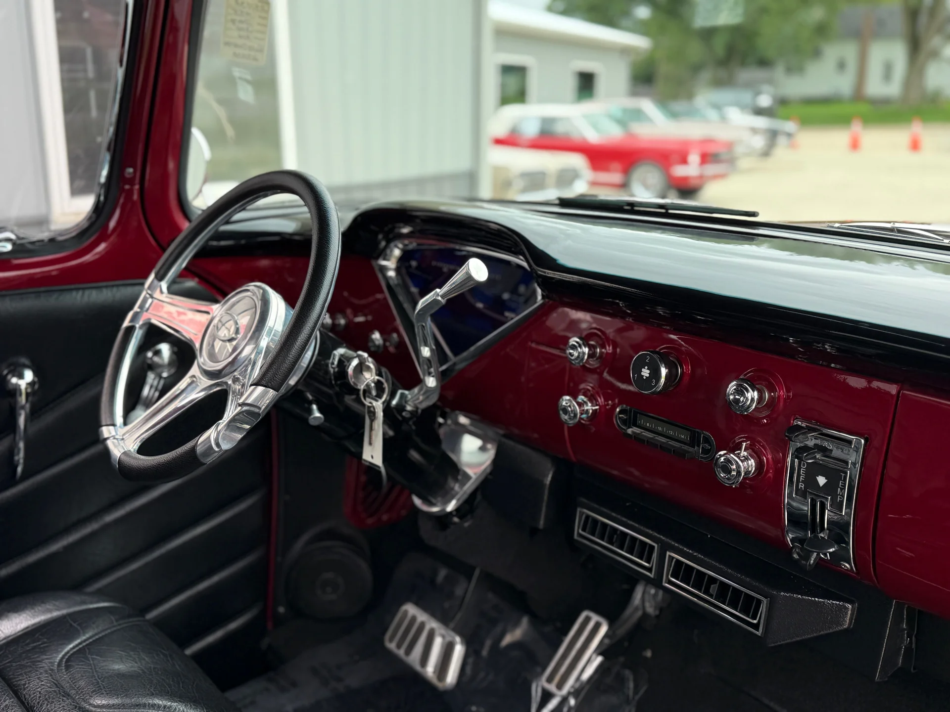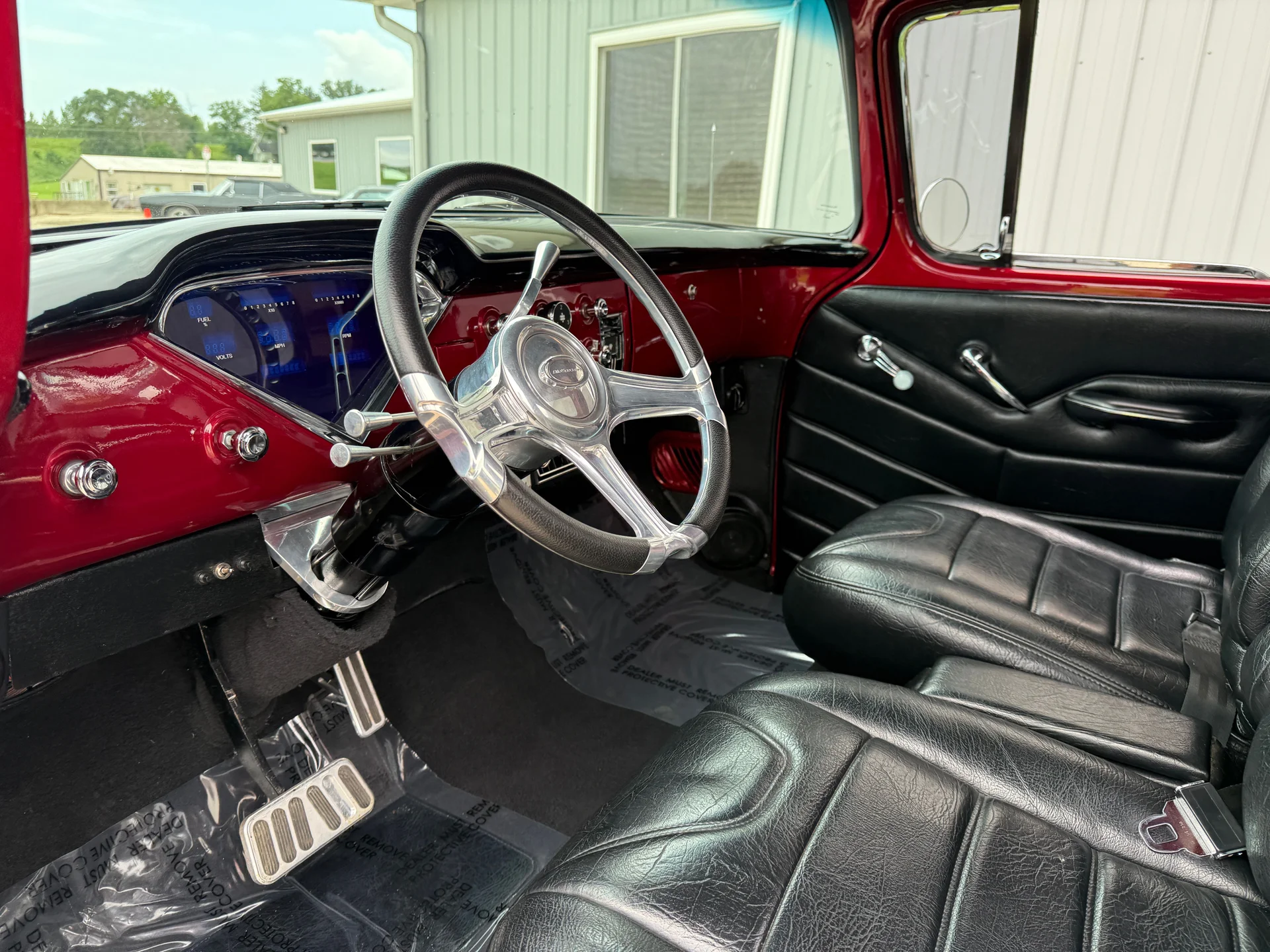 This 1955 3100 restomod blends the timeless styling of the first-year Task Force trucks with performance and comfort upgrades that make it far more capable than its mid-century origins. The 1955 redesign introduced smoother body lines, a wraparound windshield, and a more modern stance, all of which helped establish this generation as one of the most influential classic pickups. This example embraces that heritage with a red exterior that highlights the body’s crisp contours and a black leather interior that provides a refined contrast.