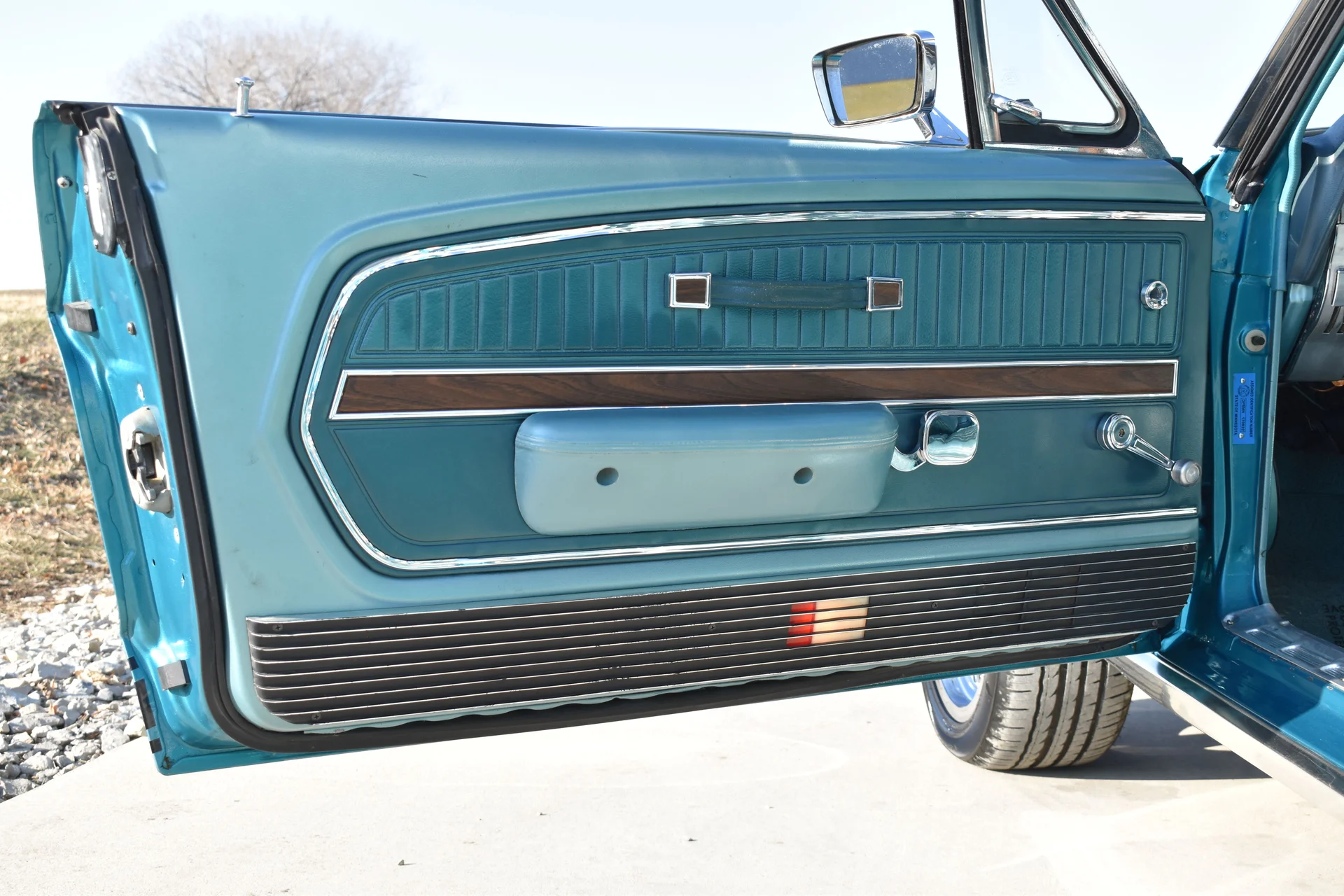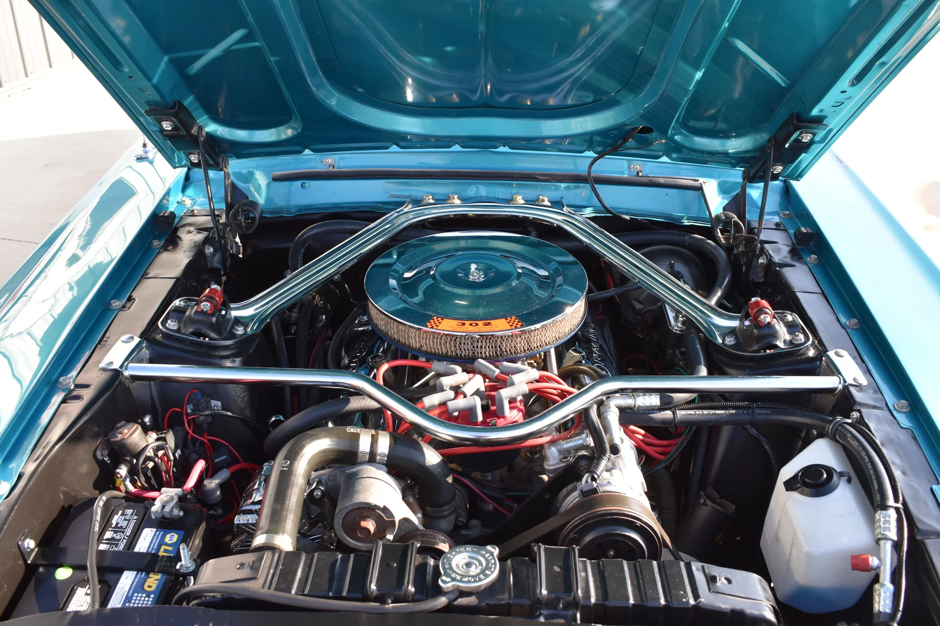 A 302 cubic-inch V8 with a four-barrel carburetor provides the power, delivering the responsive character that made small-block Mustangs popular among enthusiasts. Paired with a three-speed automatic transmission, it offers an easygoing driving experience while still maintaining the spirit of late-sixties performance. Power steering and power brakes add to the car’s usability, and the four-wheel disc brake setup improves road manners without compromising its vintage appeal.