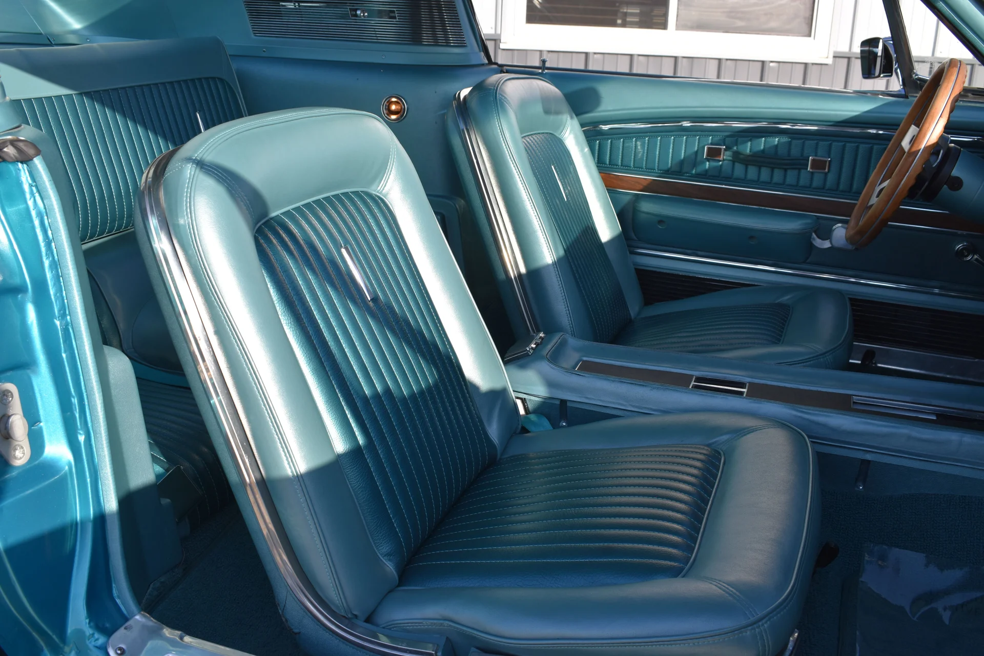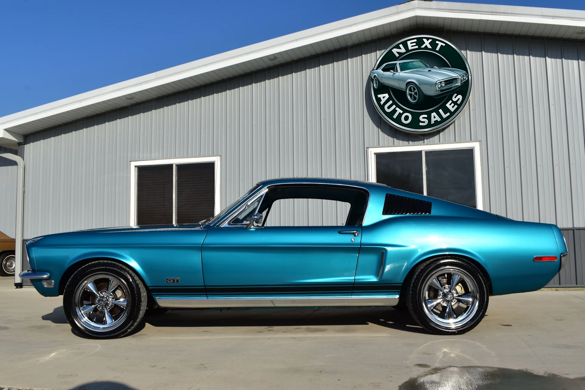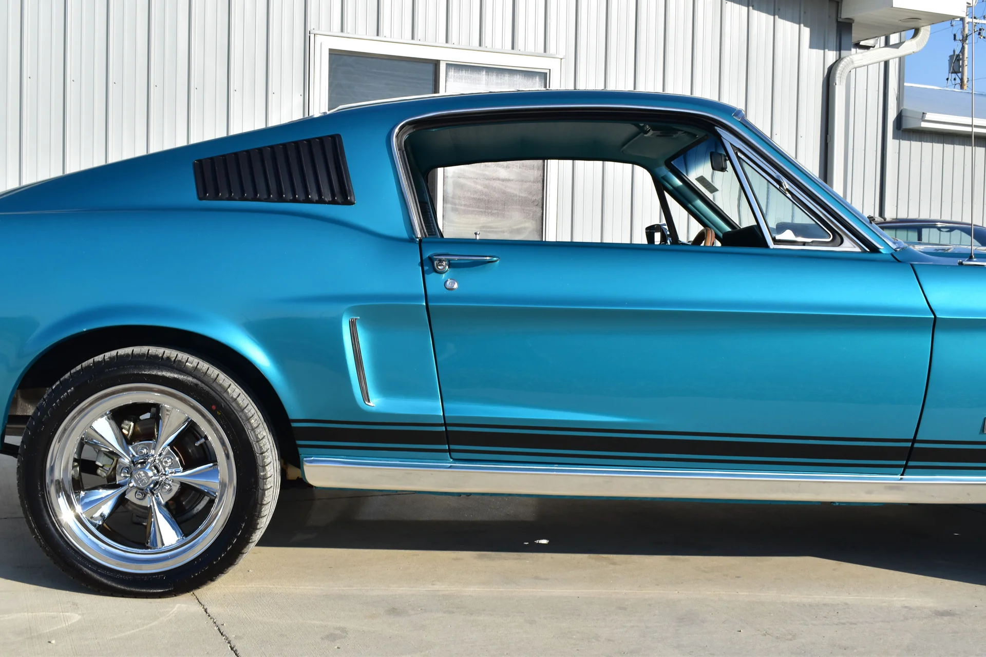 The 1968 Mustang fastback remains one of the most recognizable silhouettes of the muscle-car era, celebrated for its long-hood/short-deck proportions and sporty roofline. This model year represented the second season of the Mustang’s first major restyling, which introduced concave taillights, revised side scoops, and sharper body accents that enhanced its already athletic appearance. Finished in Gulfstream Aqua, this example highlights those crisp lines and emphasizes the bold presence that helped make the fastback a lasting cultural icon.